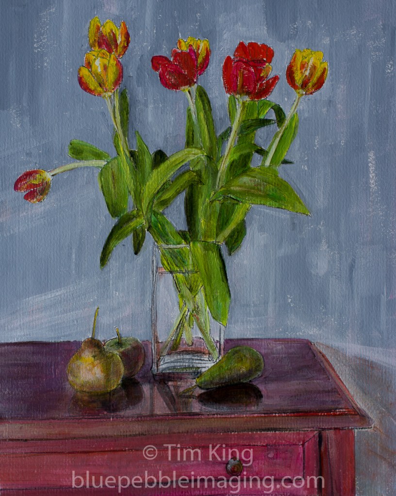 Narcissi in vase T. King, 2012. Graphite, charcoal and acrylic on paper, 17” x 13”Red tulips in green vase T. King, 2012. Graphite, charcoal and acrylic on paper, 12” x 15” Red and yellow tulips in glass vase T. King, 2012. Graphite, charcoal and acrylic on paper, 12″ x 15″