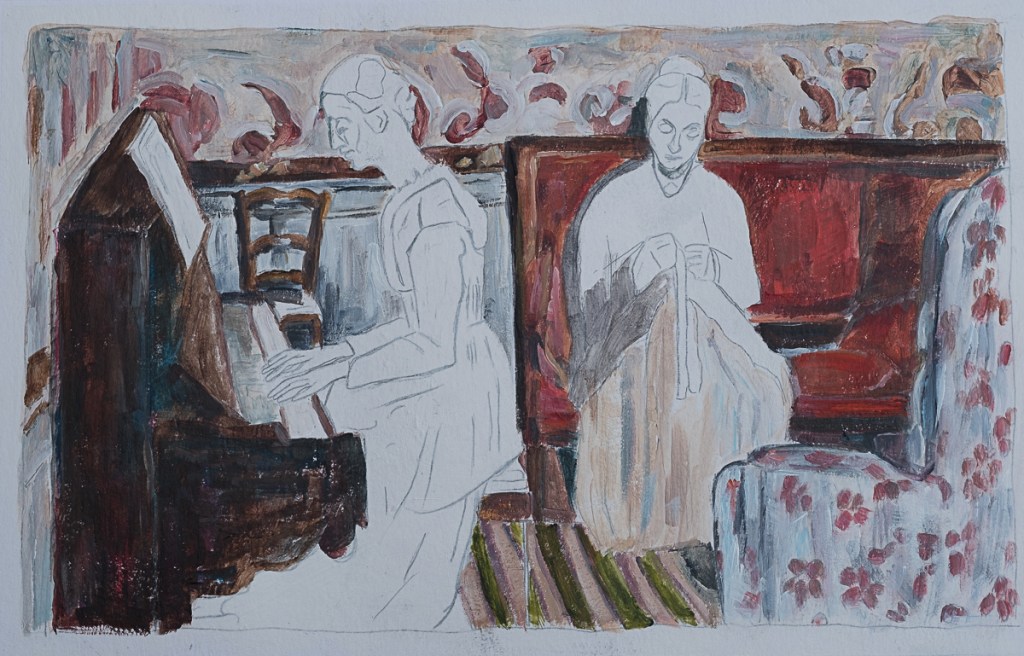 Study, copy of ‘Girl at the Piano (The Overture to Tannhauser)’ Painting by Paul Cézanne Copy of painting by Cézanne. T. King 2018, acrylic on paper, 10” x 16” Early stage in study ‘Girl at the Piano (The Overture to Tannhauser)’ Painting by Paul CézanneOil on canvas, 23” x 36”https://www.wikidata.org/wiki/Q3929306 Share this: Click to share on X (Opens in new window) X Click to share on Facebook (Opens in new window) Facebook Like Loading...